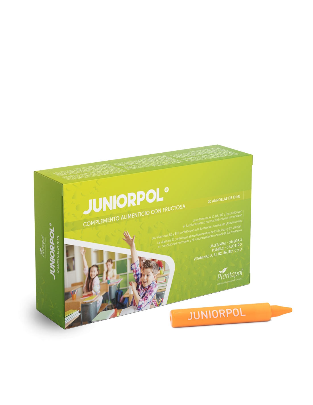 Jalea real 300 mg, aceite de pescado 25 mg (con 25% en omega 3), calostros 25 mg, pomelo 10 mg, vitamina A (acetato de retinilo), vitamina B1, vitamina B2, vitamina B6, vitamina B12, vitamina C, vitamina D, colorante carmín de cochinilla, agua, fructosa, aroma de fresa, conservador (sorbato potásico).